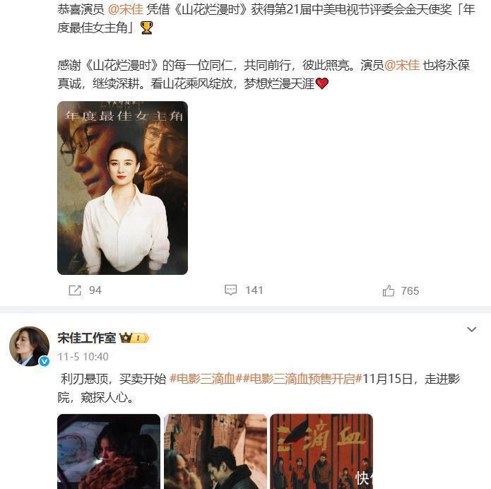 近况曝出最近,佳姐工作室在社交平台上发布了由自己主演的电影将于过几天上映,希望该电影可以有一个好的成绩。近期她凭借上部剧又拿了一个最佳女主角奖项,还在腾讯视频发布的片花中看到了由佳姐主演的电视剧。