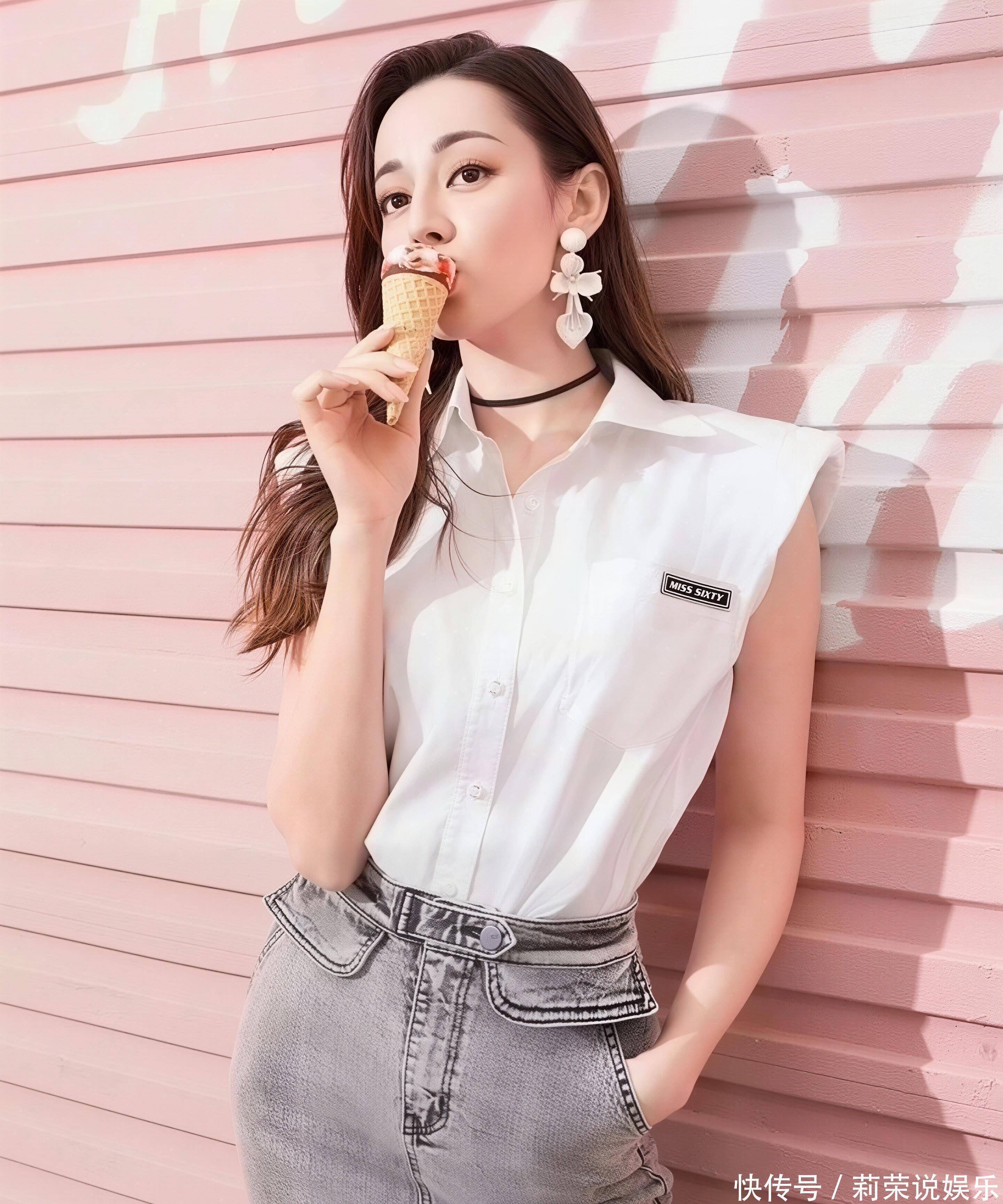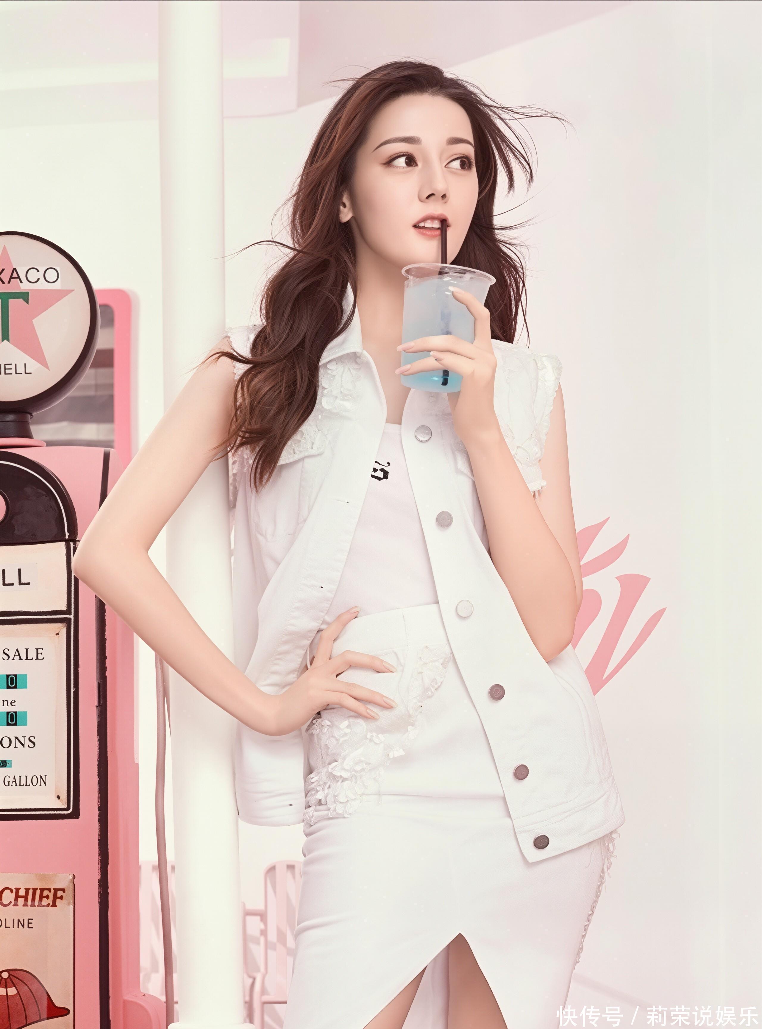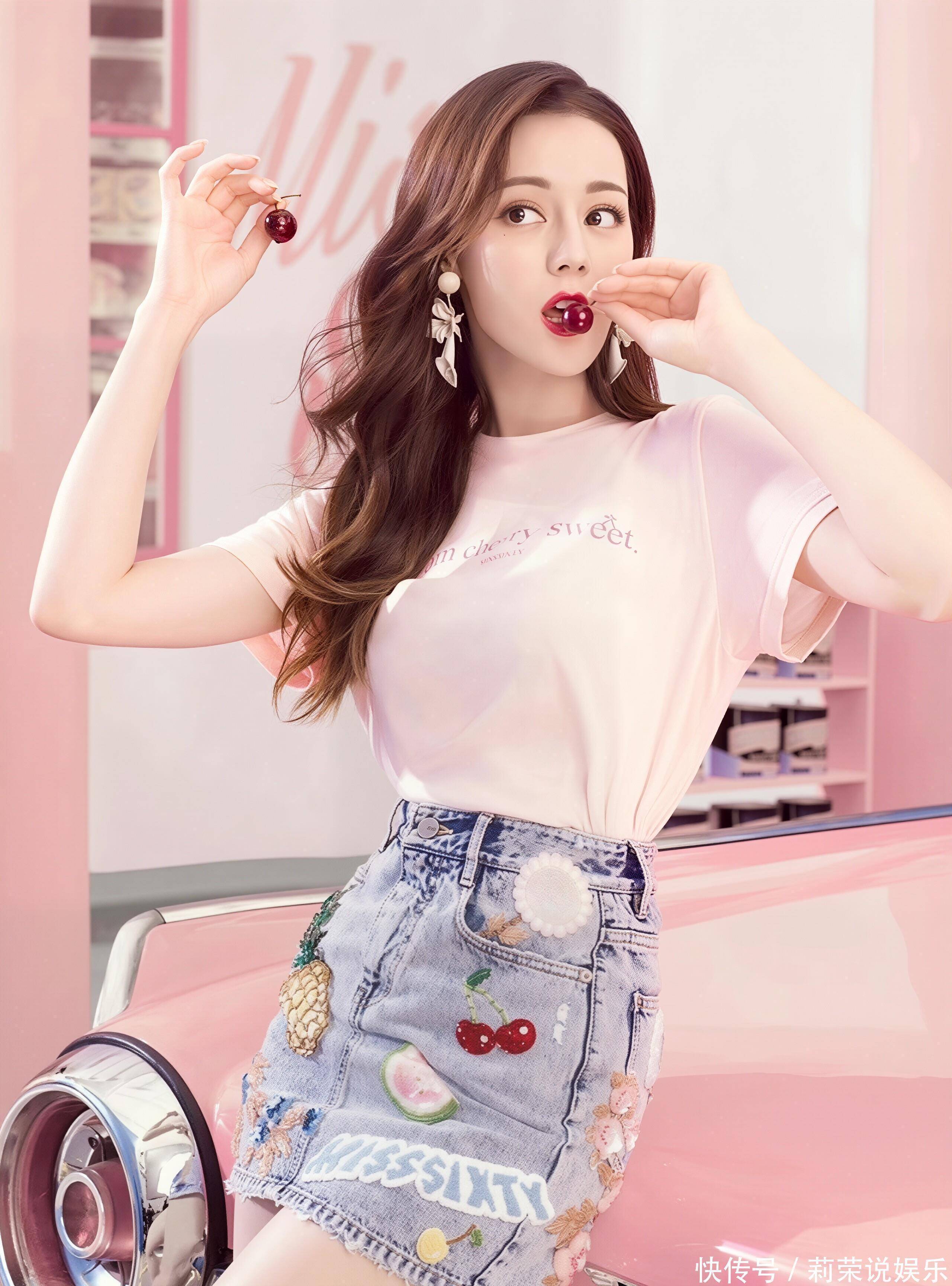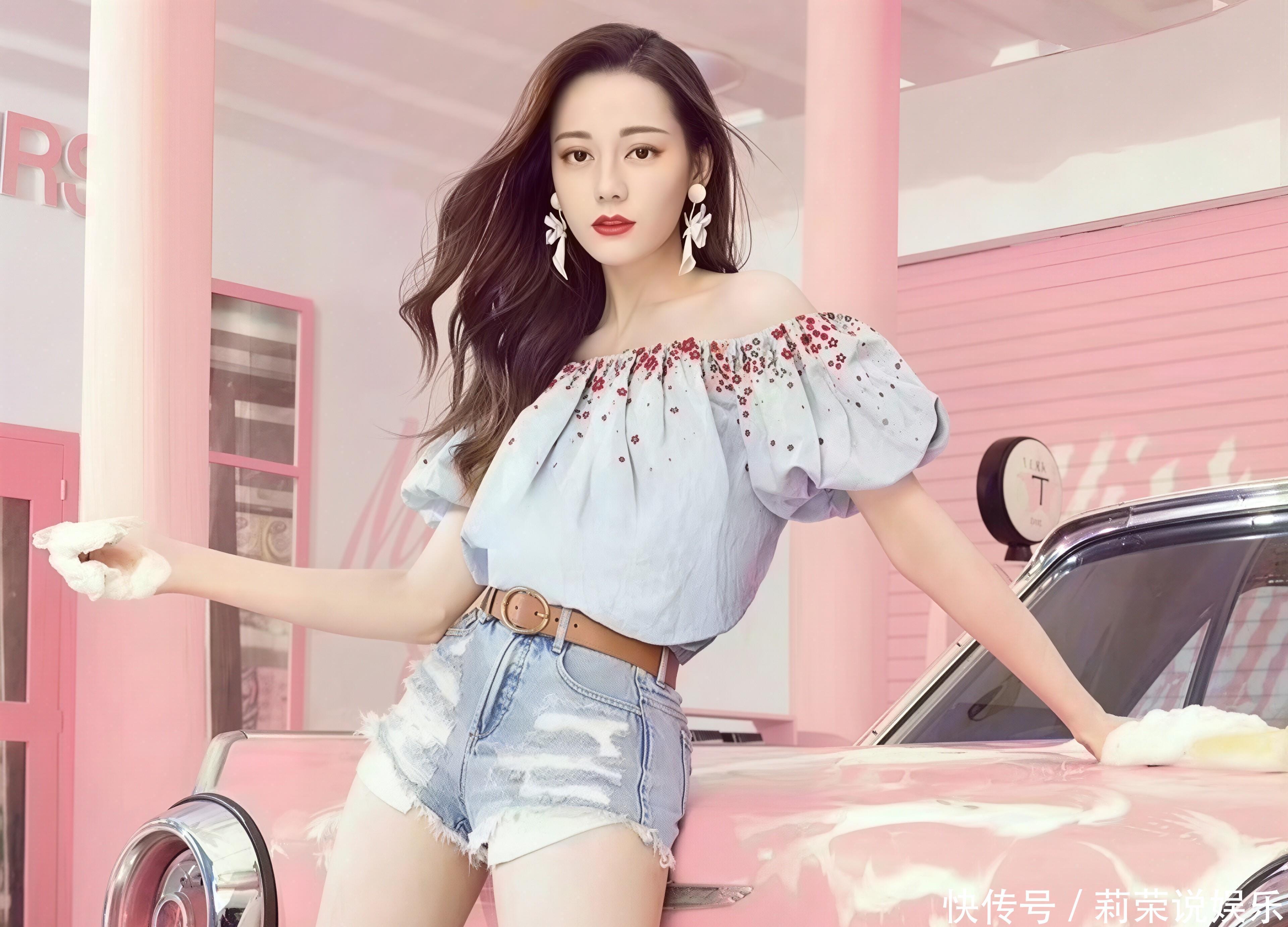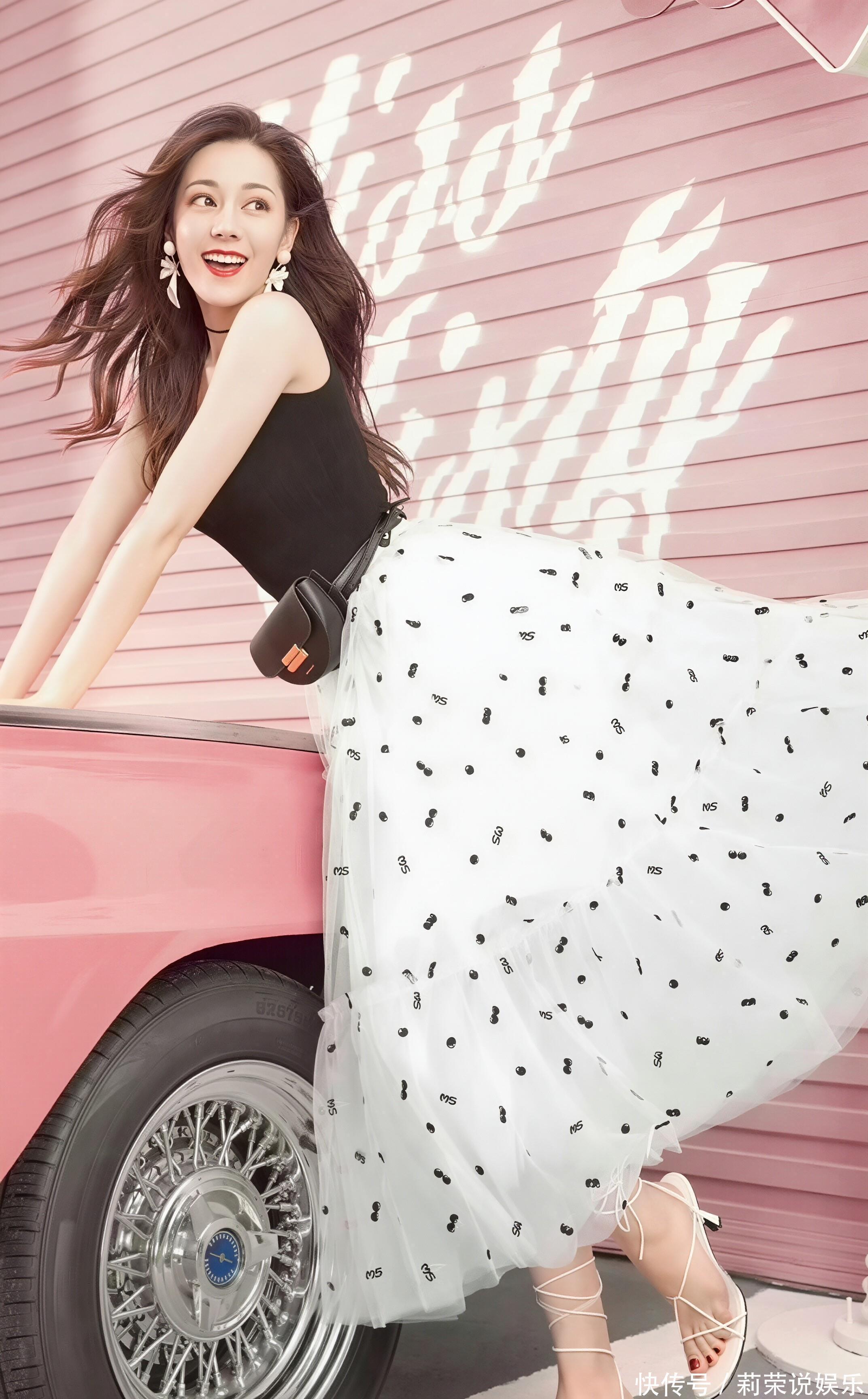 场景适配:复古加油站的鲜活氛围粉调复古加油站的场景设计,为造型赋予了完整的叙事感:复古跑车、加油机与粉色墙面相互映衬,营造出美式公路电影的氛围感。迪丽热巴或倚靠车身舒展身姿,或手持冰淇淋娇憨浅笑,或擦拭车身随性洒脱,每一个神态都与场景深度契合,仿佛在演绎一场独属于她的复古公路短剧。